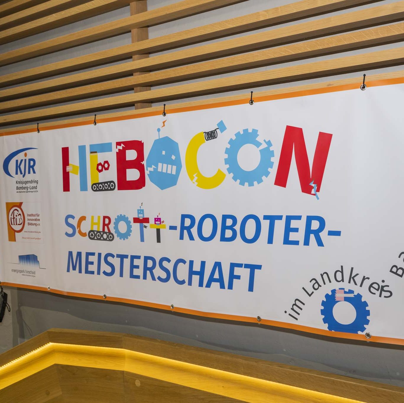 Im Rahmen der MINT-Ausstellung 2019 fand im Energiepark Hirschaid der 1. Oberfränkische Hebocon statt in Kooperation mit IfiB e. V. und dem Kreisjungendring Bamberg. Das Wort Hebocon leitet sich von dem japanischen Wort Heboi ab – ein Wort, das etwas beschreibt, das technisch schlecht oder von geringer Qualität ist. Dementsprechend sehen auch die Roboter aus. Denn sie werden aus dem gebaut, was man zu Hause finden kann: ausrangiertes Spielzeug, Kuscheltiere, alte Küchengeräte…
